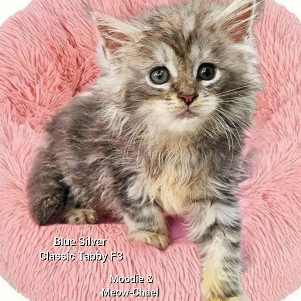 This is MOODIE & MEOW-CHAEL'S 1Yr old boy from their last litter. Gives you an idea of how their new kittens will look at 1 year old.